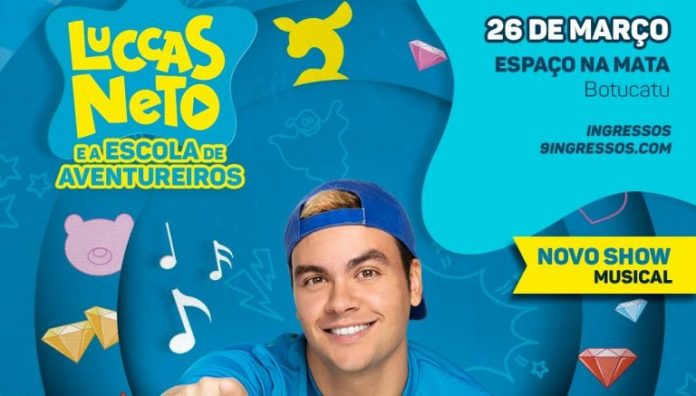 No próximo dia 26, o youtuber Luccas Neto estará pela primeira vez em Botucatu com o musical infantil “Luccas Neto e a Escola de Aventureiros”, no Espaço Na Mata.
