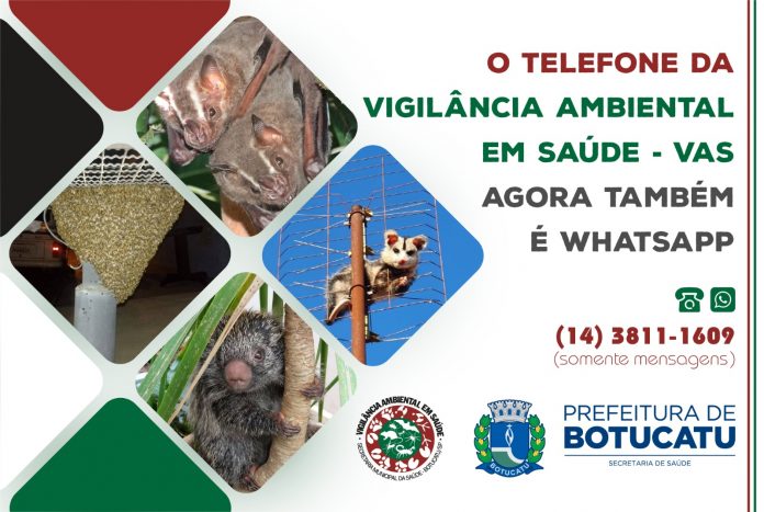 A Vigilância Ambiental em Saúde de Botucatu informa que o telefone (14) 3811-1609, agora também é WhatsApp (somente mensagens).