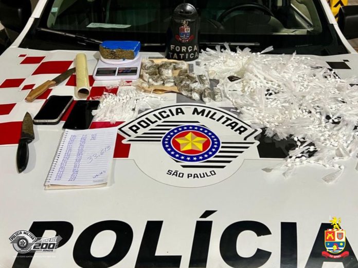 Foram apreendidos 1.200 porções de cocaína, 16 porções de maconha, uma balança de precisão, duas facas, um rolo de papel filme, um caderno com anotações e contabilidade do tráfico e dois celulares. Todo o material indica uma operação ativa de venda de entorpecentes na região.