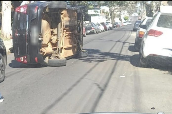 De acordo com relatos de testemunhas, um Renault Sandero tombou na via após colidir lateralmente contra um GM Onix, que estava realizando uma manobra de estacionamento. O condutor do Renault tentou desviar passando pela direita, mas acabou perdendo o controle do veículo.