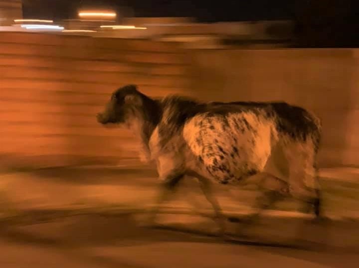 Uma vaca solta, andando no meio da rua, no Bairro Alto em Botucatu, na região do Ginásio Municipal, na noite deste domingo, 04, preocupa os moradores locais.