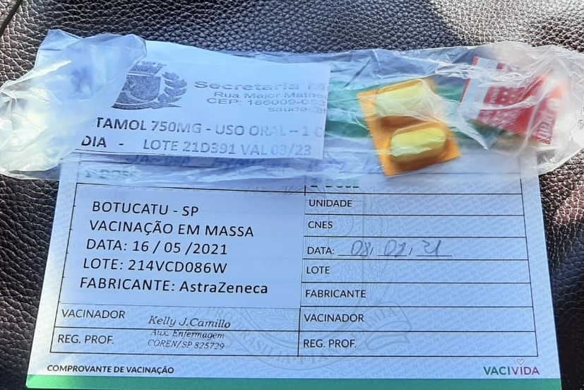 Os moradores de Botucatu estão sendo imunizados contra a Covid-19 na Vacinação em massa que está ocorrendo neste domingo, 16, estão recebendo medicamentos para possíveis efeitos colaterais da vacina AstraZeneca.