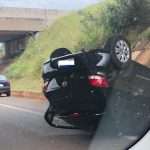 Botucatu: Carro capota na alça de acesso da Castelinho