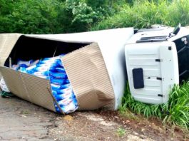 Carga com destino a Botucatu fica espalhada após caminhão perder freio na serra