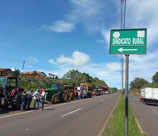 Em Pardinho, dezenas de carros, tratores e caminhões de produtores rurais participaram do protesto contra o reajuste do ICMS para o setor do agronegócios.