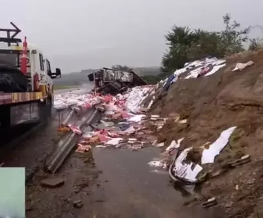 Um motorista morreu após perder o controle e tombar uma carreta que transportava folhas de sulfite nesta terça-feira (3), em Bofete (SP).