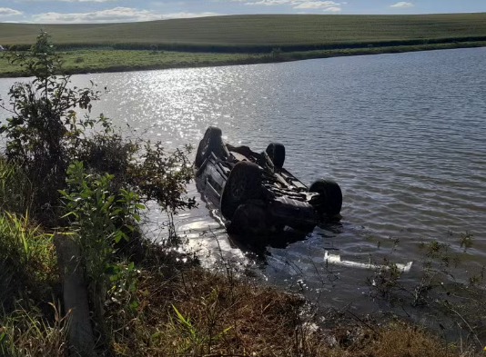 Um carro caiu em uma lagoa às margens da estrada rural que liga os municípios de Pardinho e Botucatu (SP), na manhã de domingo (16).