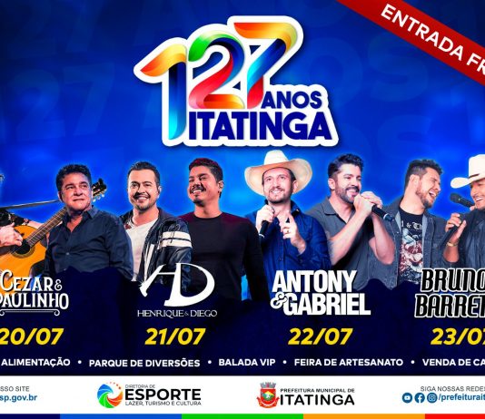 Itatinga, um município cheio de história e tradição, está prestes a comemorar seu 127º aniversário em grande estilo. A Prefeitura Municipal preparou uma festa repleta de atrações que prometem encantar moradores e visitantes. Anote na agenda: de 20 a 23 de julho, a Praça da Família/Ginásio de...