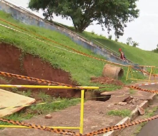 Um trecho da Avenida Luiz Fittipaldi foi interditado por causa de uma cratera...