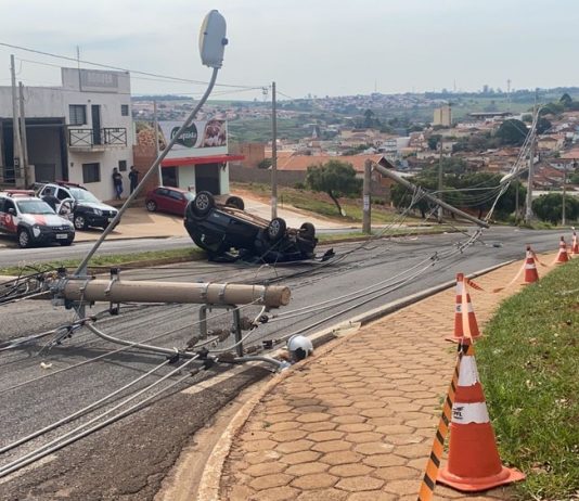 Um carro capotou e derrubou três postes na vicinal Tarcilio Baroni, em São Manuel (SP), na manhã desta sexta-feira (15). A pista que dá acesso ao município ficou interditada por volta das 9h. Até as 11h30 a via seguia interditada.