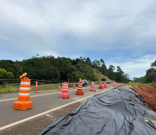 Deslizamento de terra provoca interdição e desvio em trecho de rodovia em Pardinho