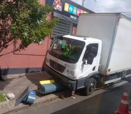Caminhão perde freio, se move sozinho e atinge parquímetro na Vila dos Lavradores em Botucatu
