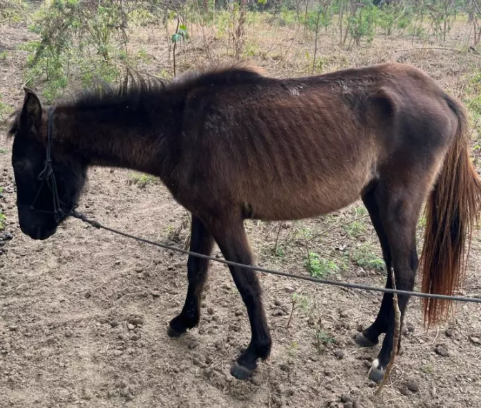 O cavalo foi imediatamente encaminhado ao canil municipal, onde já recebeu atendimento veterinário e iniciou o processo de reabilitação com alimentação adequada e cuidados específicos.