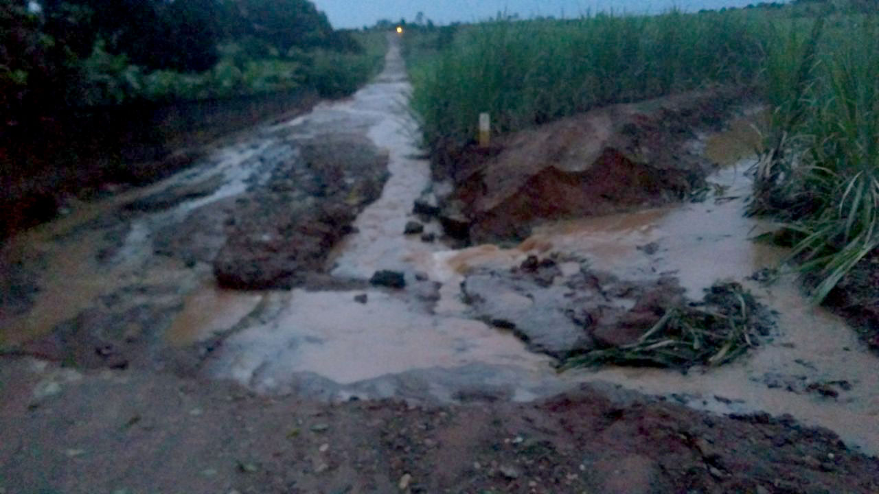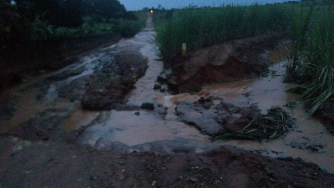Estrada de acesso ao Árvore Grande alagada devido a um açude rompido