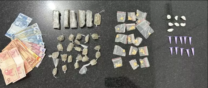 Nas sacolas, os agentes encontraram 27 porções de maconha (154g), 16 porções de crack (24g) e 17 porções de cocaína (24g). Um dos homens tentou alertar os demais gritando “os home chegaram”, indicando o uso de olheiros para monitoramento da movimentação policial.