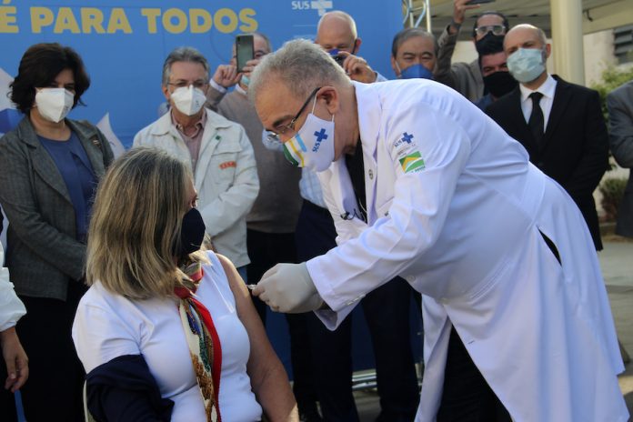O ministro da Saúde, Marcelo Queiroga, acompanhou a imunização e esteve presente na Escola Municipal de Ensino Fundamental Cardoso de Almeida, um dos pontos de aplicação da vacina, ainda pela manhã.
