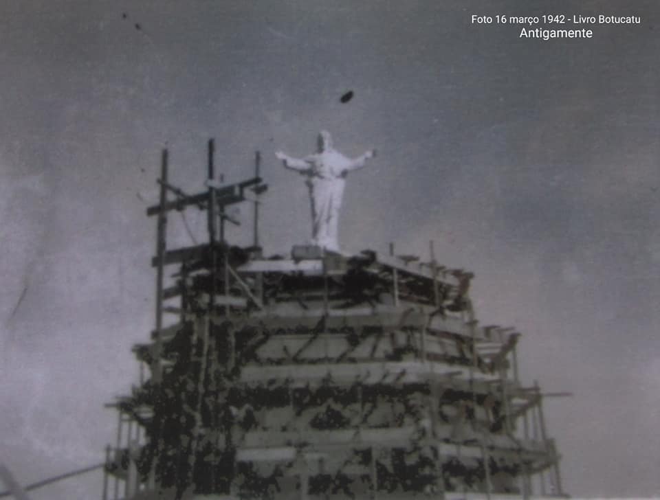 O que causa curiosidade é como, no início da década de 40, conseguiram colocar a estátua no topo da abóboda da Catedral. O botucatuense Ramiro Viola tem a resposta e contou em suas redes sociais. Leia abaixo o relato: