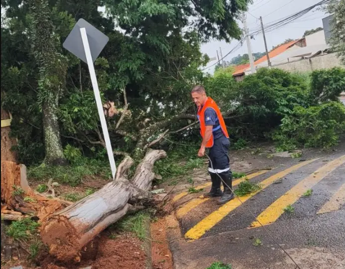 Botucatu enfrentou transtornos em diversos pontos da cidade, após a forte tempestade que atingiu a cidade na tarde deste domingo (29). Um dos casos que mobilizou a Defesa Civil ocorreu na Rua Pedro Donini, no bairro Parque Santo Antônio da Cascatinha, onde uma árvore antiga, com risco iminente de queda, preocupava moradores.