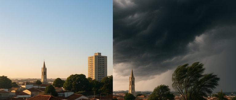 Já a partir de segunda-feira (28), uma nova frente fria começa a se deslocar pelo estado de São Paulo, provocando mudanças expressivas no tempo, especialmente na faixa leste do território paulista. Em Botucatu, há chance de chuva pela manhã (44%), seguida de sol com diminuição de nuvens durante a tarde.