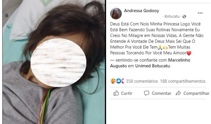 “Uma criança de 8 anos está internada na UTI (Unidade de Terapia Intensiva) de um hospital particular no município de Botucatu com suspeita de AVC (Acidente Vascular Cerebral). Como os primeiros sintomas começaram a surgir 11 dias após ela ser vacinada contra a Covid-19, a nossa equipe de saúde seguiu os protocolos estabelecidos e notificou o Governo do Estado de São Paulo sobre o ocorrido.
