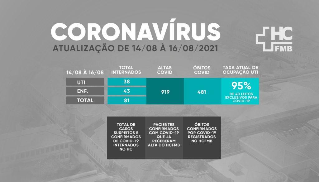 O Hospital das Clínicas da Faculdade de Medicina de Botucatu divulgou nesta segunda-feira, 16, que a UTI Covid-19 inicia a semana com 95% de ocupação.