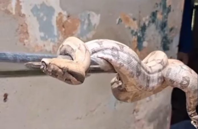 No local, a equipe identificou o animal como uma jibóia, espécie não peçonhenta e comum na região. Diante do risco tanto ao animal quanto aos moradores, os agentes realizaram o manejo e o resgate de forma técnica e segura, garantindo a integridade das pessoas e da serpente.