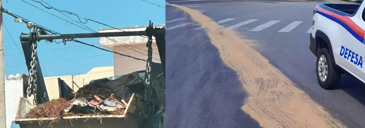 Nesta sexta-feira (7), a Defesa Civil de Botucatu registrou duas ocorrências de derramamento em via pública. No início da manhã, um caminhão-caçamba derrubou entulho e resíduos de construção em diferentes ruas da cidade, circulando com o container de descarte acima da capacidade e sem contenção adequada.