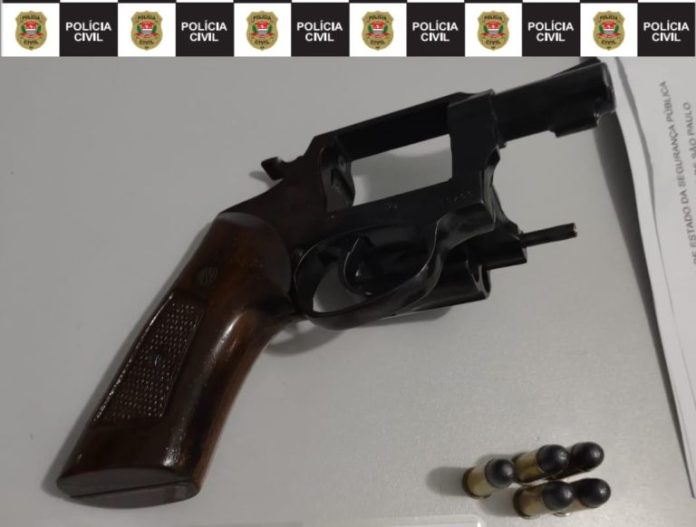 Durante buscas no endereço do homem, de 74 anos, denunciado recentemente pela companheira, de 67 anos, com quem vive junto já 36 anos, os investigadores apreenderam revólver calibre 38, que estava com certificado de registro vencido desde 2012, e cinco munições intactas.