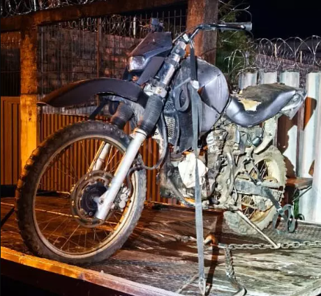 Na verificação do veículo, foi constatada a adulteração dos sinais identificadores, o que impediu a confirmação de sua procedência. A motocicleta foi apreendida para perícia.