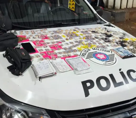 De acordo com a ocorrência, os indivíduos tentaram fugir ao perceber a aproximação das viaturas, mas foram abordados e contidos. Com eles, foram localizadas diversas porções de drogas fracionadas e prontas para a venda, além de uma balança de precisão, uma caderneta com anotações, celulares e dinheiro em espécie.