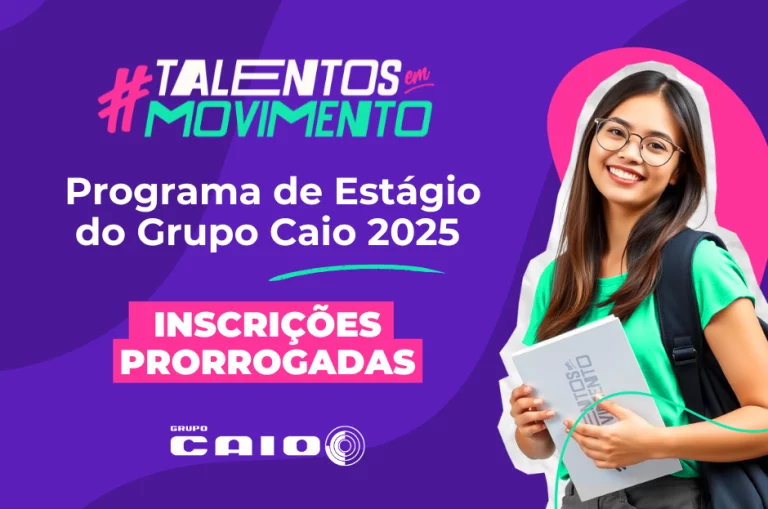 As inscrições do “Programa de Estágio do Grupo Caio 2025” foram prorrogadas até o dia 31 de outubro. O processo para se inscrever continua o mesmo: pela Página de Carreiras https://grupocaio.gupy.io/ .