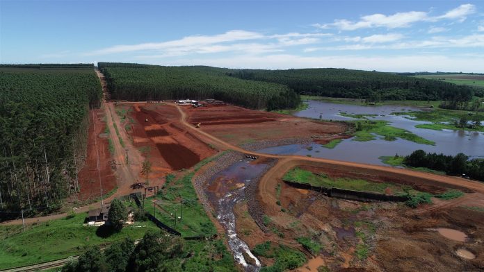As empresas responsáveis continuam também a execução da barragem de terra, que servirá de base para a estrutura de aço e concreto, bem como o plantio compensatório de mudas.