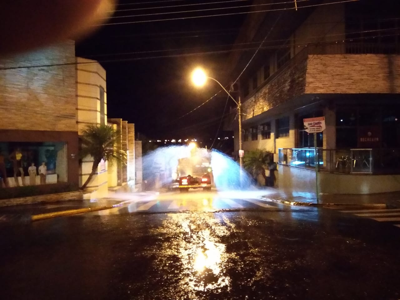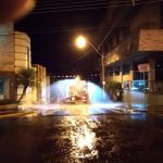 Essa higienização que está sendo feita com uso de máquinas costais e pulverizadoras com o auxílio de caminhões pipas, é feita com hipoclorito ativo e serve para combater o coronavírus. Ela é supervisionada pela equipe de Vigilância Sanitária da Diretoria de Saúde do Município.