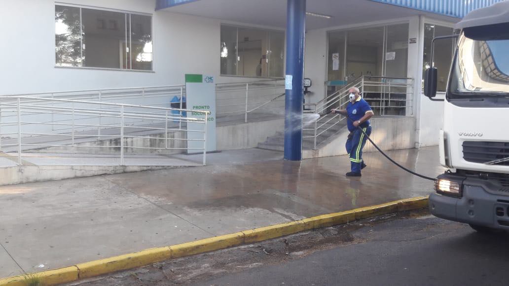 O trabalho de sanitização de pontos da Cidade, característicos pela aglomeração de pessoas, continua. Prefeitura de Botucatu, Usina São Manoel e Sabesp, através de uma parceria, realizam o processo que se baseia na pulverização de uma solução de água com hipoclorito de sódio, que neutraliza a ação do coronavírus nesses locais.