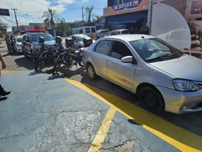 Durante patrulhamento preventivo, uma equipe das Rondas com Motocicletas (ROMO) da GCM foi acionada pelo Centro de Operações Integradas (COI) sobre a entrada na cidade de um Toyota Etios prata, placas BAV8J64, vinculado a um grave crime ocorrido no Paraná. O veículo foi flagrado por câmeras da Muralha Digital circulando em Botucatu e rapidamente localizado na Rua Dr. Jaguaribe.