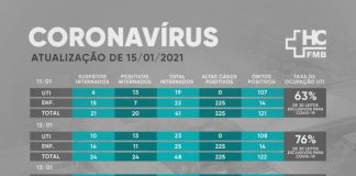 Nas últimas 24 horas, três óbitos de pacientes com diagnóstico confirmado de COVID-19 foram registrados no HCFMB: Um homem de 62 anos, morador de...